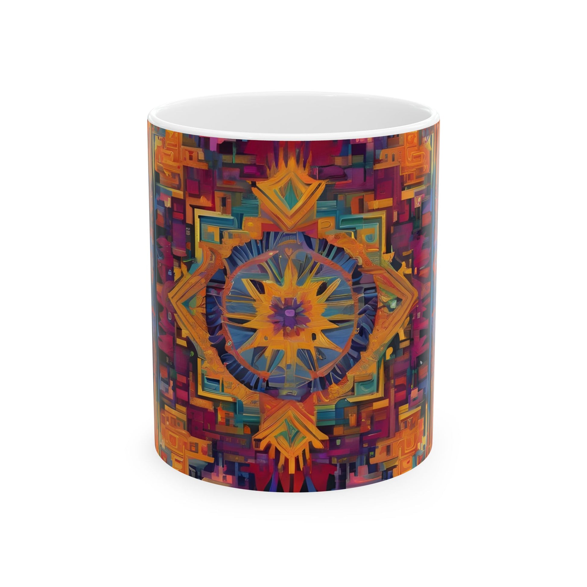 Vibrant Geometric Ceramic Mug - Colorful Art Design for Coffee Lovers